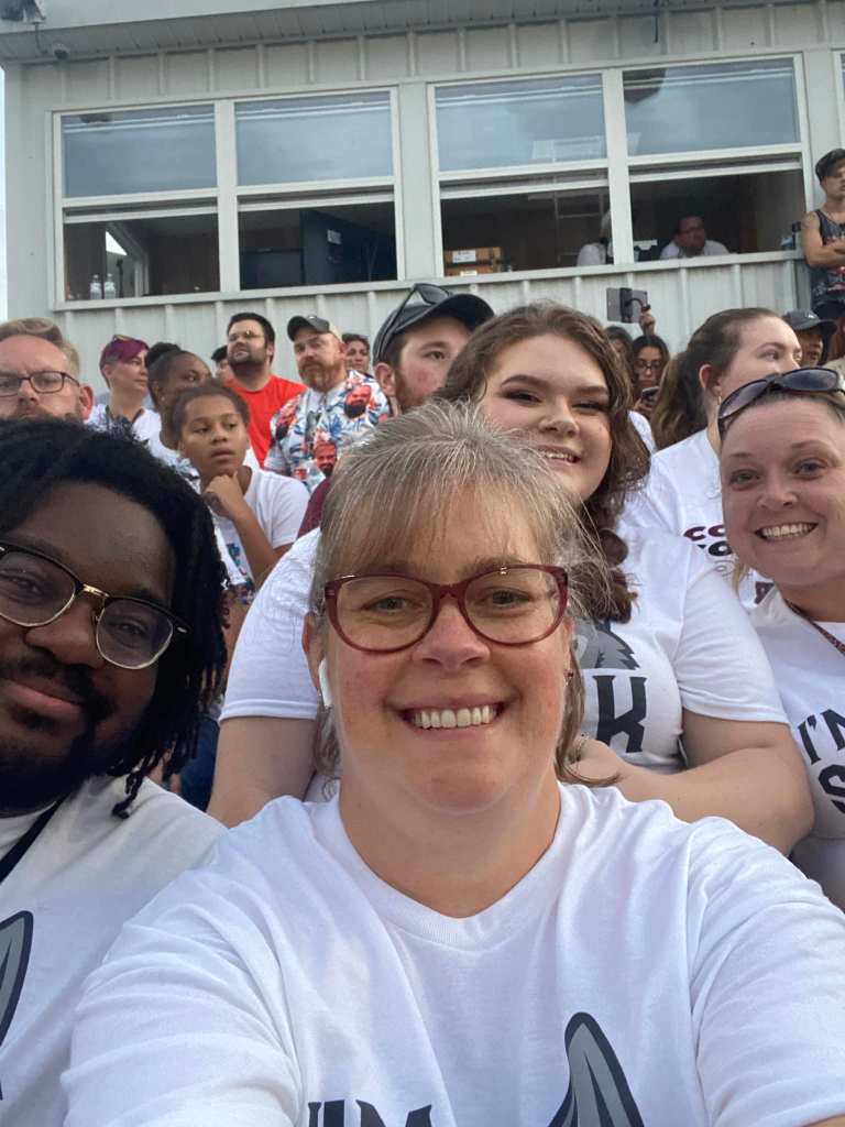 Friday night, August 19, 2022, was the home opener for the school. It was a white out game, you wear white team shirts rather than black team shirts. We got to the field a little early so that we could participate in the tailgate party for the different grades and talk to the teachers that were there as well. Let me tell you, there was a crowd there, over 900 people. The morale of the students, parents, and teachers was so high! It was such a blessing to see so many smiles, hear so much laughter, and to see so many students with face paint.